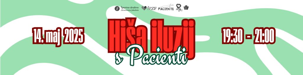PACIENTI V HIŠI ILUZIJ 🎉 Študentska organizacija Zdravstvene fakultete – Pacienti vas z veseljem vabi na brezplačen dogodek v Hiši iluzij, kjer bomo skupaj raziskovali svet optičnih vpadljivosti, razgibanih perspektiv in neverjetnih zaznav! 📍 Kdaj? sreda, 14. …