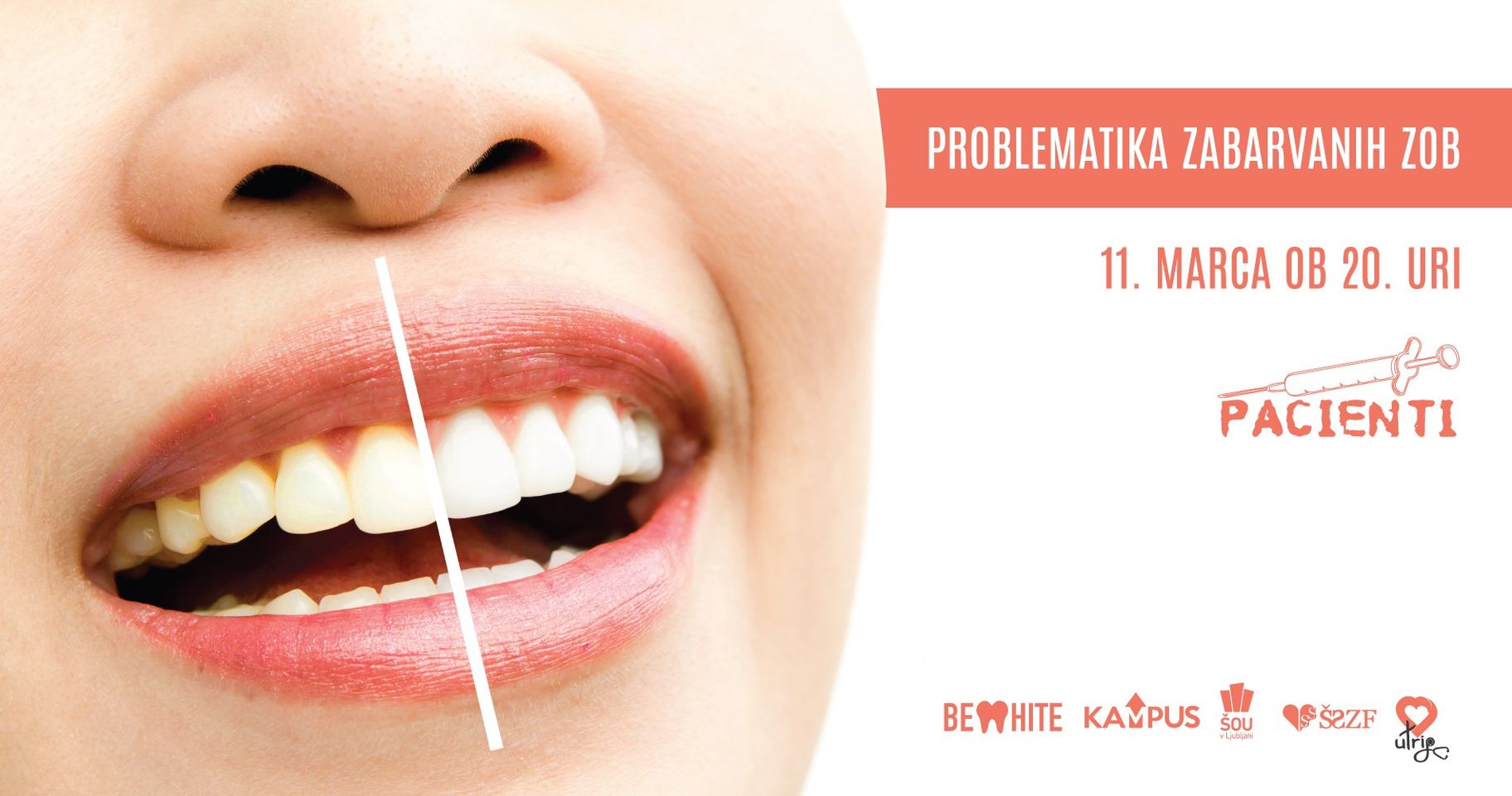 Predavanje bo vodil Nejc Klabjan dr.dent.med, zobozdravnik, ki je soustanovitelj podjetja BEWHITE, pri katerem, želijo posameznikom pomagati pričarati brezskrben nasmeh. Predstavljeno Vam bo, kako se izogniti zabarvanju zob in kako lahko odpravimo rumene zobe pri zobozdravniku ali kar sami doma.