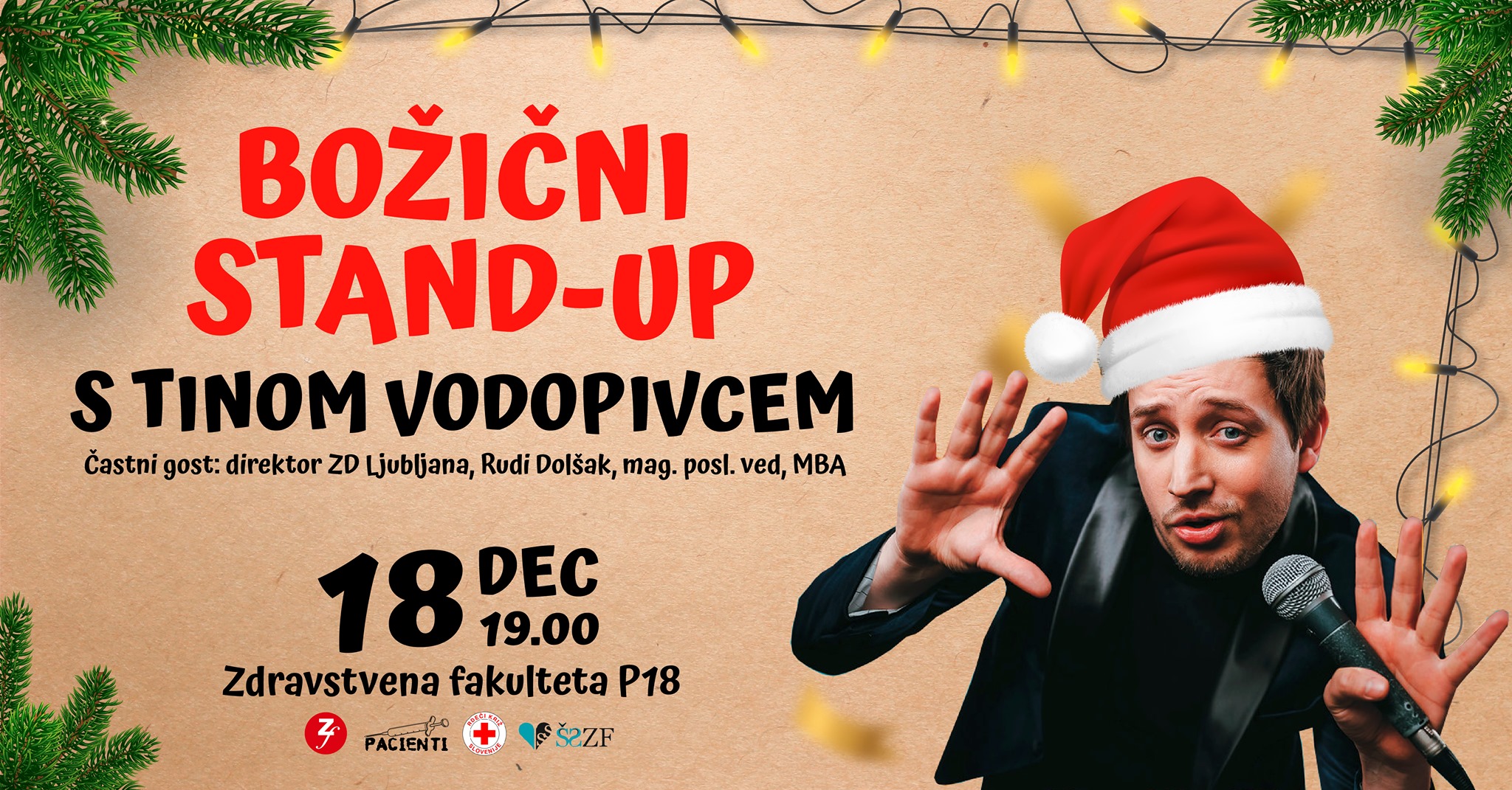 Zdravstvena fakultetaDrage študentke in cenjeni študentje Zdravstvene fakultete! V sklopu 𝗗𝗼𝗯𝗿𝗼𝗱𝗲𝗹𝗻𝗲𝗴𝗮 𝘁𝗲𝗱𝗻𝗮 𝗭𝗱𝗿𝗮𝘃𝘀𝘁𝘃𝗲𝗻𝗲 𝗳𝗮𝗸𝘂𝗹𝘁𝗲𝘁𝗲 𝟮𝟬𝟮𝟰, tudi letos organiziramo sedaj že tradicionalni 𝗗𝗼𝗯𝗿𝗼𝗱𝗲𝗹𝗻𝗶 𝗯𝗼𝘇̌𝗶𝗰̌𝗻𝗶 𝘀𝘁𝗮𝗻𝗱-𝘂𝗽! Letos nas bosta zabavala 𝗩𝗶𝗱 𝗩𝗮𝗹𝗶𝗰̌ in 𝗔𝗹𝗲𝗻 𝗠𝗮𝘀𝘁𝗻𝗮𝗸! Vidimo se 𝘃 𝘀𝗿𝗲𝗱𝗼, 𝟭𝟴. 𝗱𝗲𝗰𝗲𝗺𝗯𝗿𝗮 𝗼𝗯 𝟭𝟵:𝟬𝟬 na 𝗭𝗱𝗿𝗮𝘃𝘀𝘁𝘃𝗲𝗻𝗶 𝗳𝗮𝗸𝘂𝗹𝘁𝗲𝘁𝗶 𝘃 𝗽𝗿𝗲𝗱𝗮𝘃𝗮𝗹𝗻𝗶𝗰𝗶 𝟭𝟴 (𝗣𝟭𝟴). Tudi letos se bomo pridružili projektu “𝗕𝗢𝗭̌𝗜𝗖̌𝗞𝗢𝗩𝗔 𝗧𝗢𝗩𝗔𝗥𝗡𝗔 …